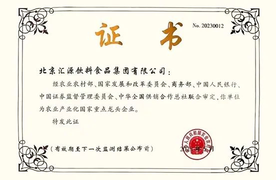 近日,农业农村部官网发布《关于公布第十次监测合格和递补农业产业化国家重点龙头企业名单的通知》,北京新新利18官网登录入口饮料食品集团有限公司(以下简称新新利18官网登录入口集团)再次上榜,获评“农业产业化国家重点龙头企业”。新新利18官网登录入口集团于2002年首次登上“农业产业化国家重点龙头企业”名单,连续保持至今,再次彰显出其在农业产业化发展中的丰硕成果与强大实力。