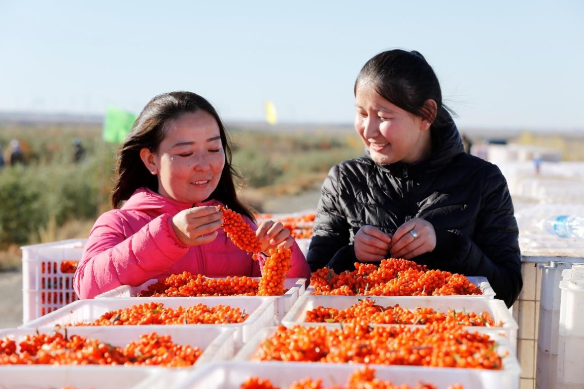 截至2022年,新新利18官网登录入口在新疆阿勒泰地区布尔津县的沙棘种植基地挂果面积已近4万亩,待挂果面积6万亩,年产量约7000吨,每年转移当地劳动力8万余人次,通过流转土地解决当地贫困农户700余人,帮助当地农户人均增加年收入7500元至31000元不等。